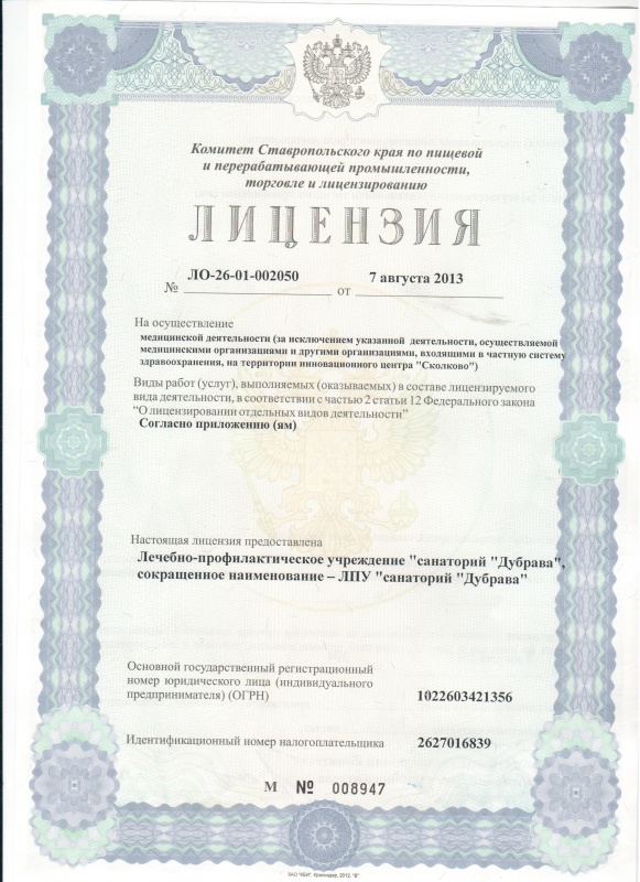 Для заезда в санаторий «Дубрава» требуются следующие документы: