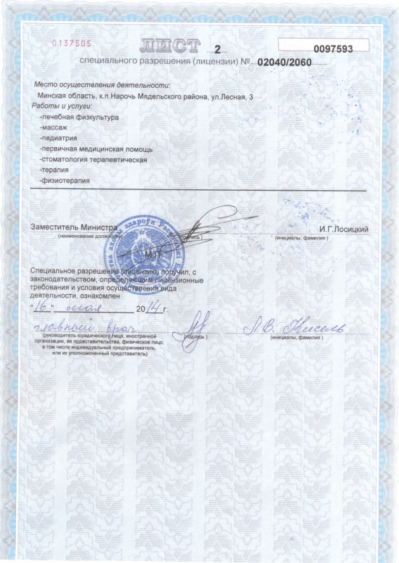 Основные виды лечения: - восточный массаж - диетотерапия - ингаляционная терапия - лазеролечение - лечебные ванны - лечебные души - лечение поляризованным светом - массаж ручной - сухие углекислые ванны - электрогрязелечение - гальвано-грязелечение Рекомендуемые экскурсионные маршруты:- Святыня Беларуси (костел в д.Будслав);
