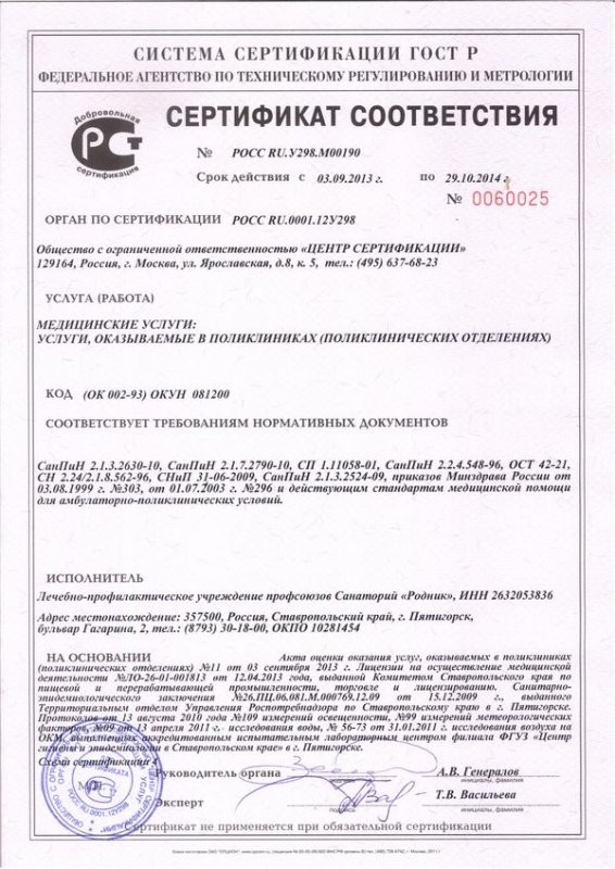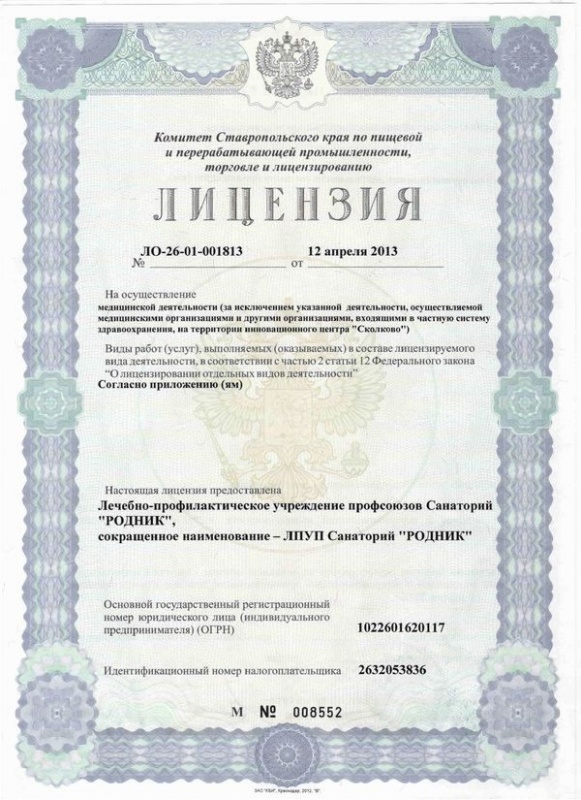 Для заезда в санаторий «Родник» требуются следующие документы: