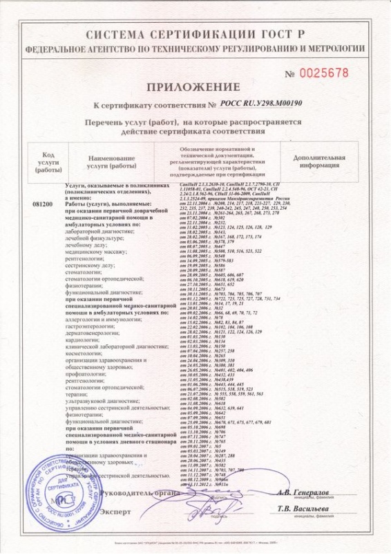 заболеваний органов пищеварения, нервной и сердечно-сосудистой систем, опорно-двигательного аппарата, кожи, органов дыхания, гинекологических и урологических заболеваний, ЛОР- органов, нарушения обмена веществ, эндокринной системы, аллерго-иммунологических заболеваний.
