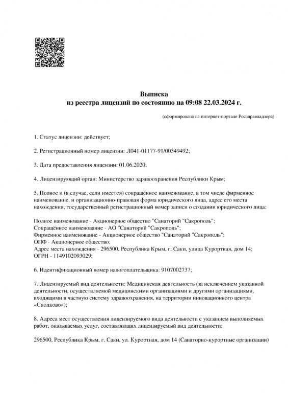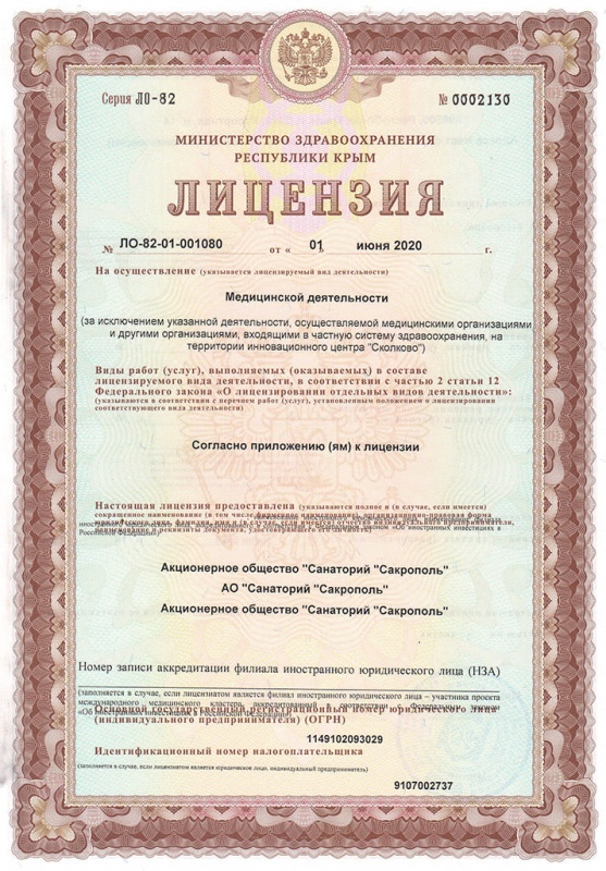 Санаторий «Сакрополь» обладает новейшей водогрязелечебницей и самым современным оборудованием не старше 5 лет.