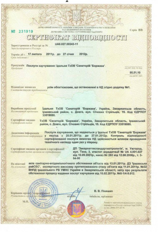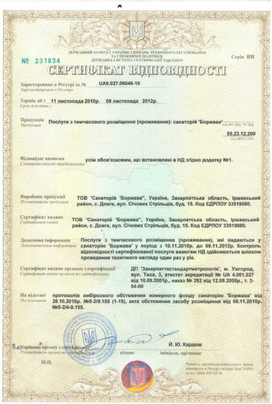 Украина, Закарпатская область, Иршавский р-н, с. Долгое, ул. Сечевых Стрельцов, 15. Доводим до Вашего сведения, что в течение сезона возможно изменение порядка и объема предоставления услуг, заявленных в концепции любого из отелей. Лечение: - желудочно-кишечного тракта (гастрит с пониженной и повышенной кислотностью, язвенная болезнь желудка и двенадцатиперстной кишки в стадии ремиссии, хронический панкреатит в стадии ремиссии, дискинезия желчного пузыря, хронические гепатиты) - опорно-двигательного аппарата (артриты, полиартриты, (за исключение туберкулезных), спондилоартроз, спондилез, ревматоидный артрит І степени активности, остеохондроз позвоночника с радикулярным синдромом и без него) - периферической нервной системы в стадии ремиссии (радикулиты, плекситы, невриты, полиневриты, посттравматические поражения нервных окончаний, периферийных нервов) - периферических сосудов (облитерирущие эндартерииты I-II степени, облитерирующий атеросклероз без язв и гангрены, болезнь Рейно), варикозное расширение вен без тромбофлебита и трофических нарушений) - сердечно-сосудистой системы (гипертоническая болезнь I-II степени без кризового течения, гипотоническая болезнь, нейроциркуляторная дистония, ишемическая болезнь сердца, кардиосклероз) - верхних дыхательных путей (хронические трахеиты, бронхиты, синуситы, фарингиты, ларингиты) - эндокринной системы и обмена веществ (сахарный диабет легкой степени, гипертиреоз легкой степени, алиментарное ожирение, подагра, мочекислый диатез).