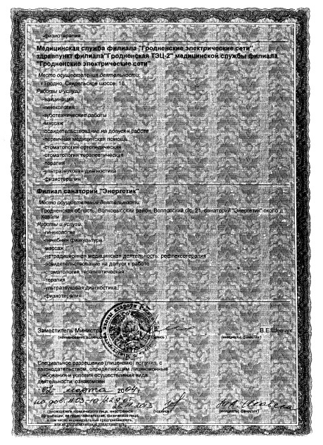 Консультации специалистов: - врач УЗИ-диагностики - врач-терапевт - врач-иглорефлексотерапевт - врач-гинеколог - врач-физиотерапевт - врач-стоматолог